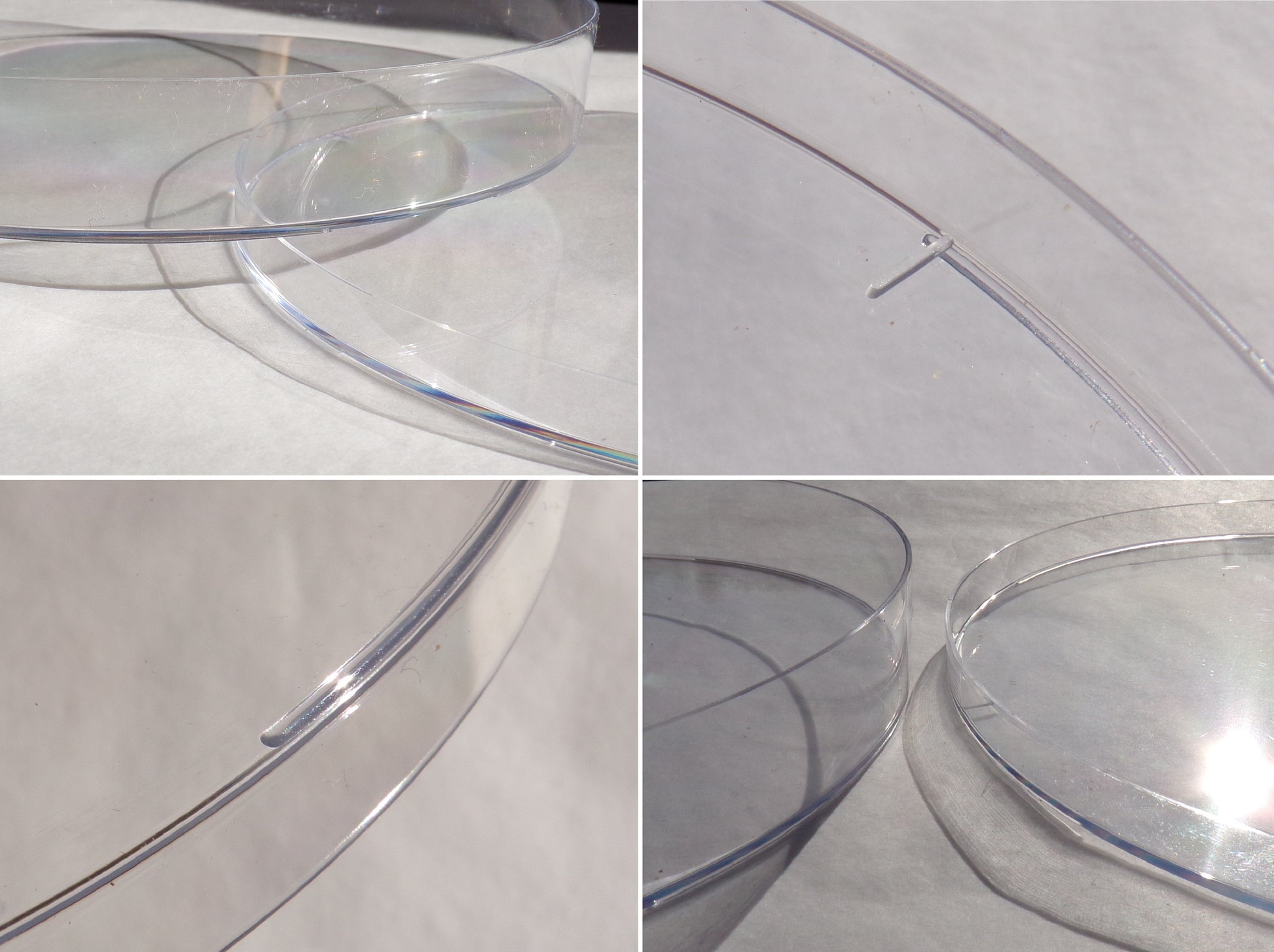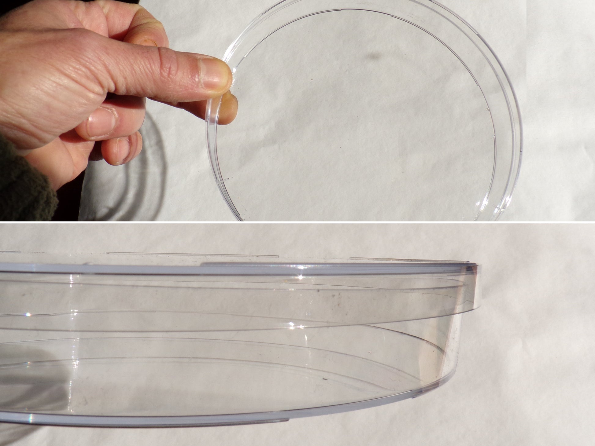 Boîte de Pétri cylindrique transparente, polystyrène cristal, munie d'un couvercle.