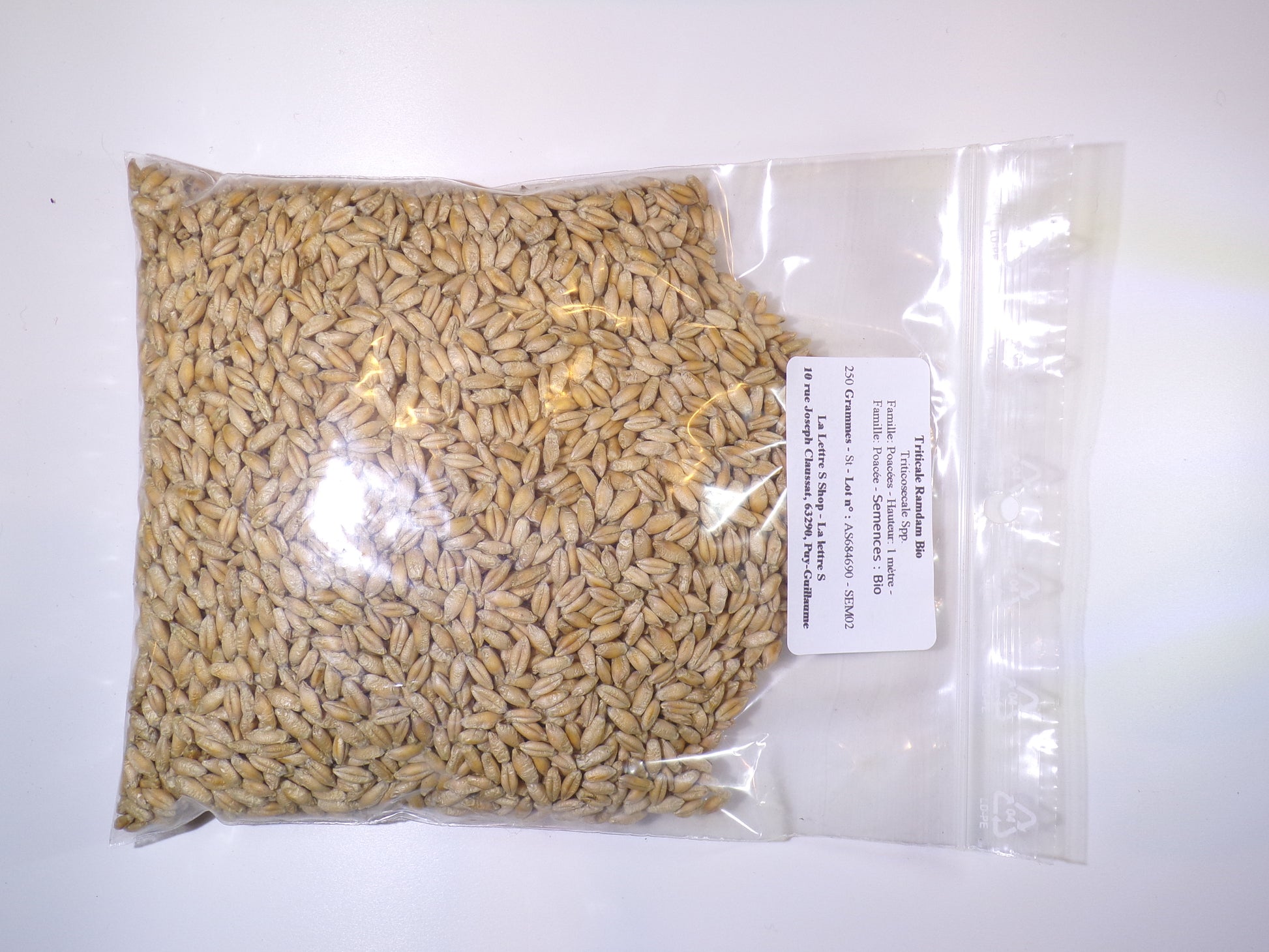 250 grammes (dans un sachet Zip 15x18).